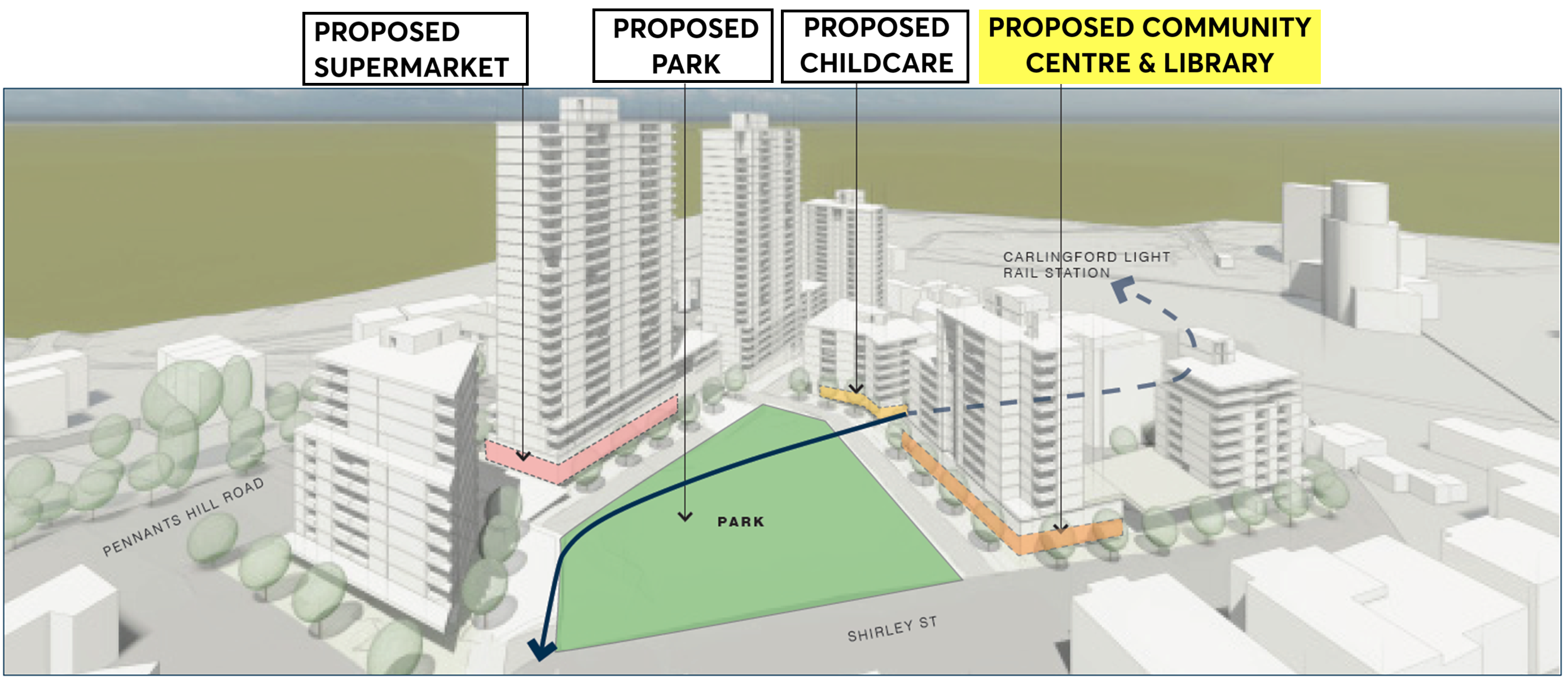 As part of this project, Council is planning to establish a new community centre in Carlingford that will incorporate library services, further enhancing access to educational and social opportunities within the community. Examples of community centres with integrated library services include the Wentworth Point Community Centre and Library, and PHIVE in Parramatta.