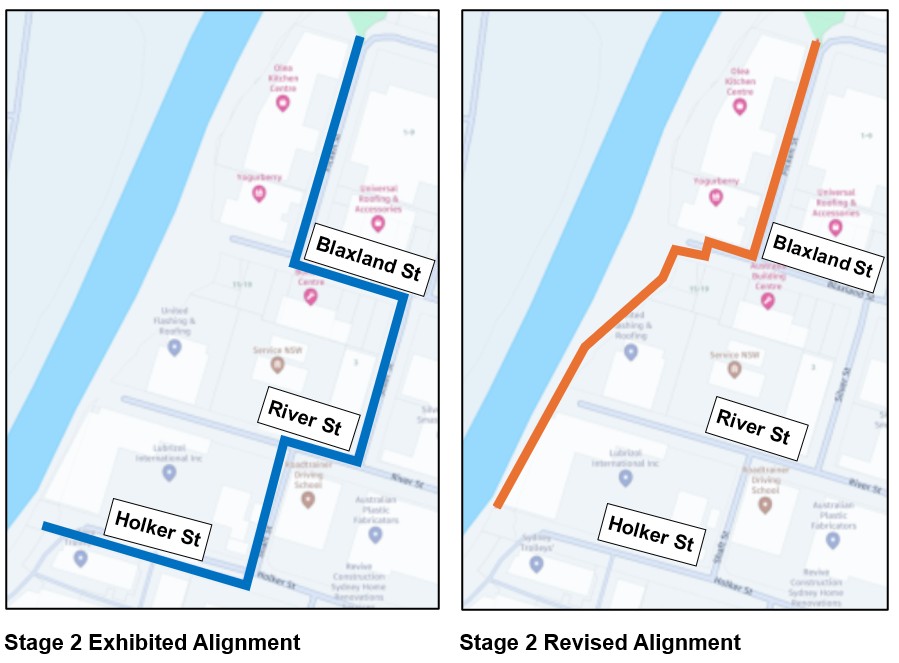 We’ve listened to community feedback and explored our options carefully. Following further investigation, Council is pleased to share that Stage 2, between Blaxland Street and Holker Street, has been re-aligned along Duck River foreshore.