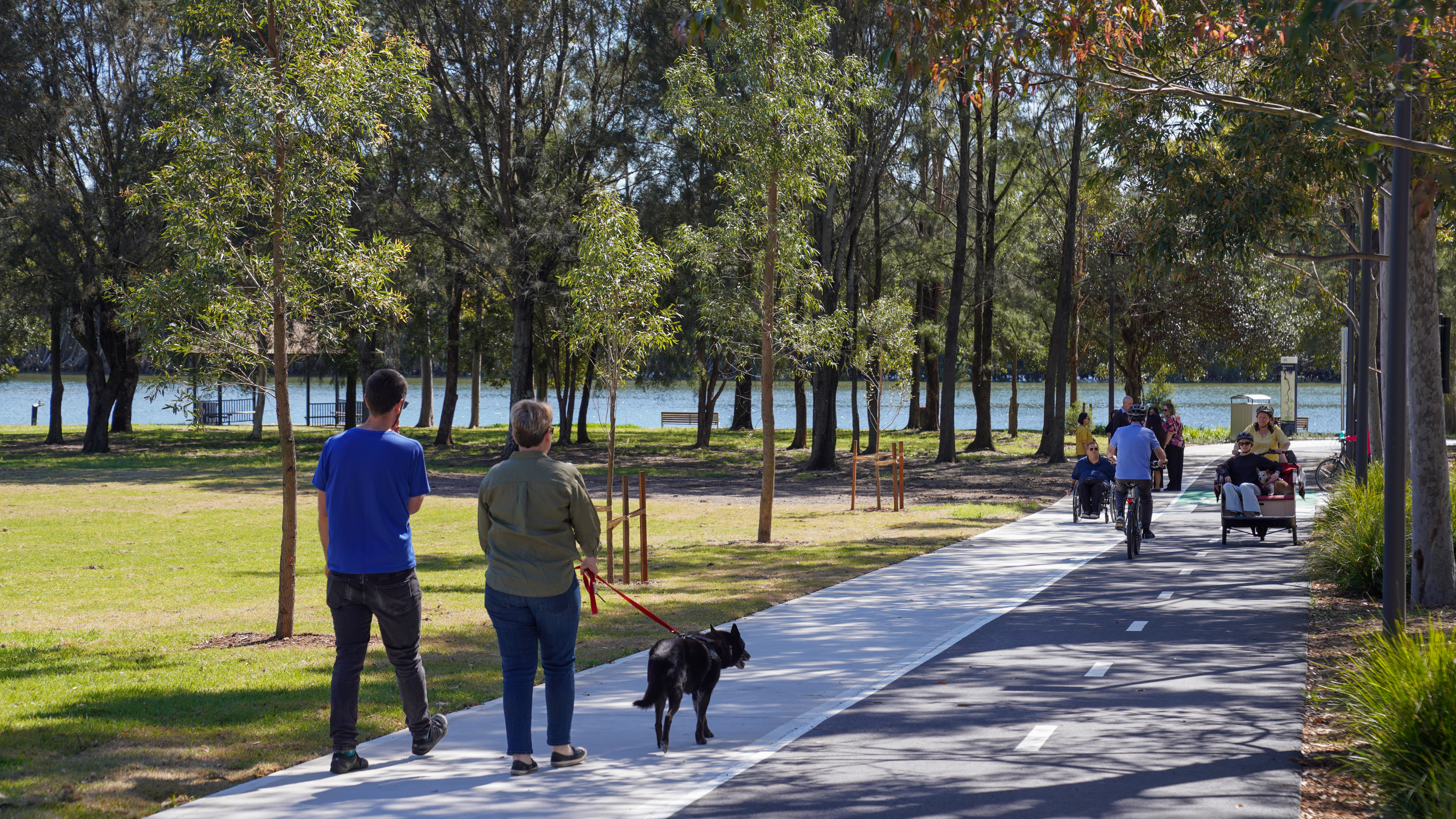 - 1km+ of separated bike paths and footpaths along the streets of Silverwater where the Duck River foreshore is inaccessible, with new street trees, lighting and raised priority crossings of all streets