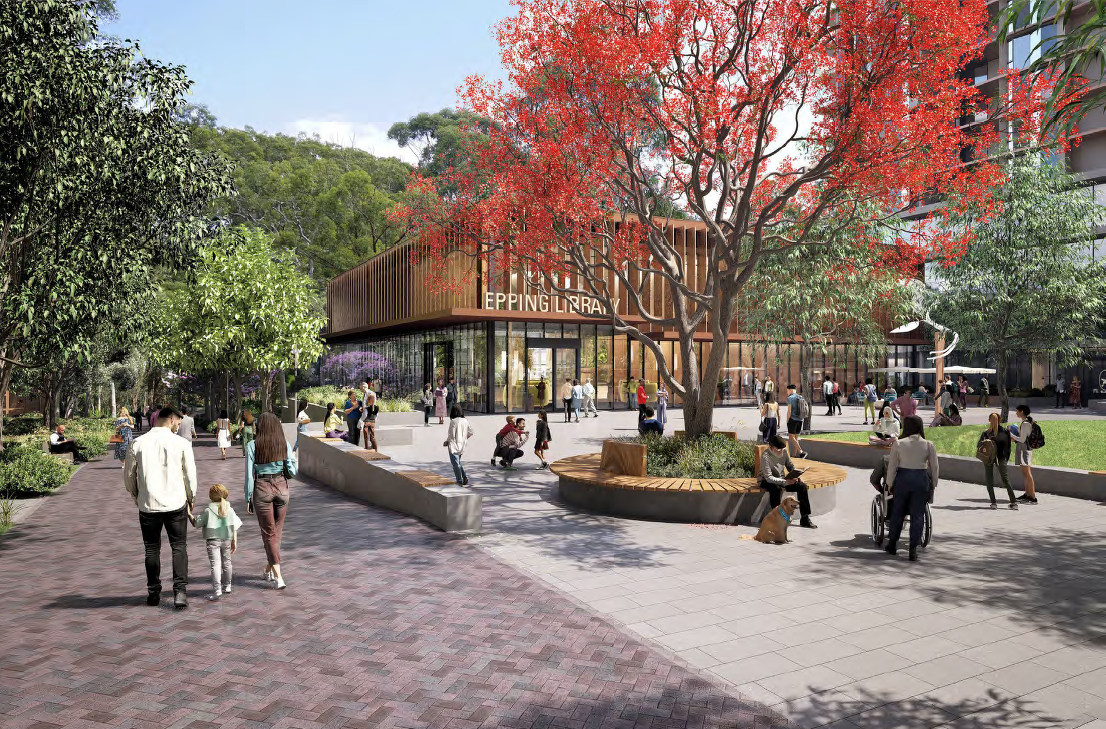 1). Epping Civic Place – the existing Rawson Street car park converted into a town square and open public space with a green link that extends to Boronia Park, while offering underground car parking to maximise the public domain and potential new library and community centre.