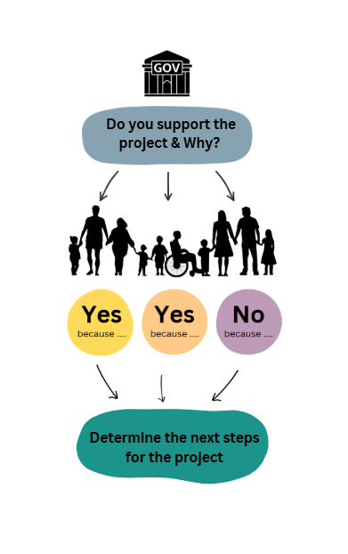이 플랫폼에서 커뮤니티 참여란 의사결정(decision making)에 대한 공공의 참여를 의미합니다. 즉, 의회가 결정이 내려지기 전에 이 지역에 거주, 근무, 재학 또는 방문하는 분들께 프로젝트에 대한 의견을 공유해 달라고 초대하는 과정입니다.