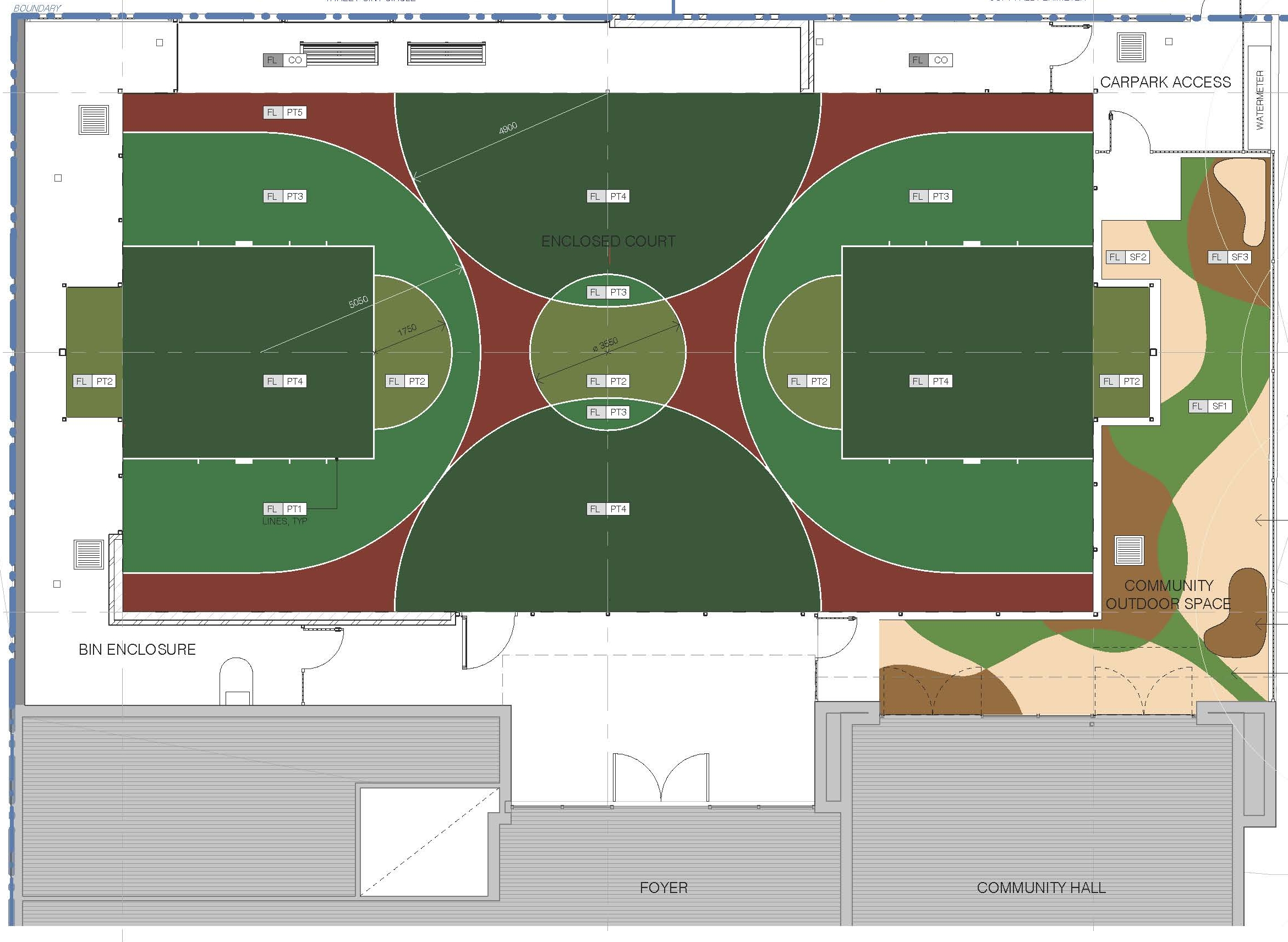 The new court will include line markings that allow for basketball, netball, and futsal (soccer) to be played.