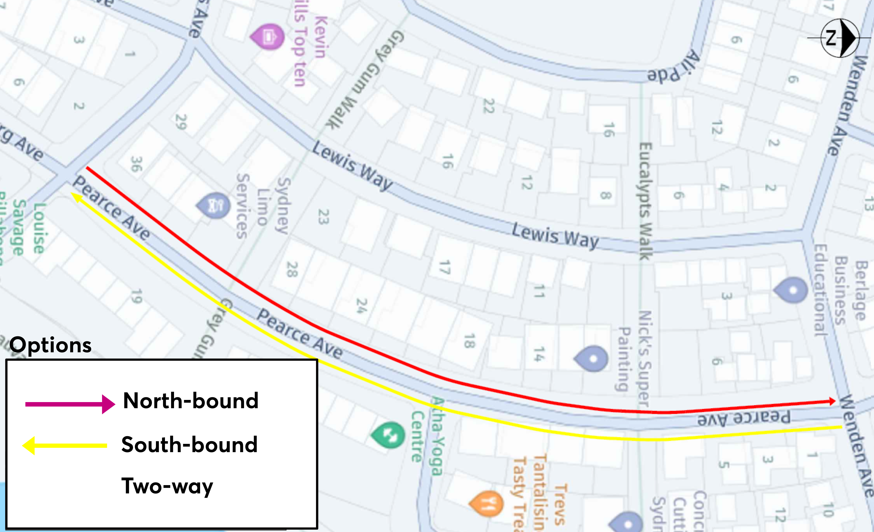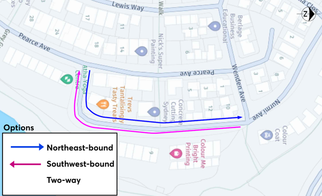 Nurmi Avenue (South of Wenden Avenue), Pearce Avenue (Between Wenden Avenue and Kuts Avenue) and Heidelberg Avenue are relatively narrow and may be better served by adopting a one-way traffic flow. In addition, consultation conducted between April and May 2025 showed that a large proportion of residents living on these three streets were in favour of this approach as a solution for managing event-related parking issues and improving access.