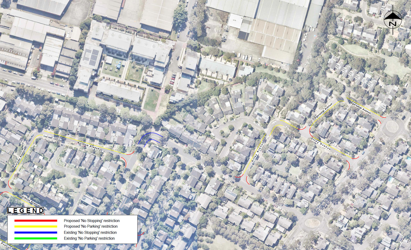 It was proposed that, ‘No Parking’ restrictions be applied to one side of the streets located southwest of Wing Parade, Newington Boulevard, Egerszegi Avenue and Haslams Creek as detailed below: