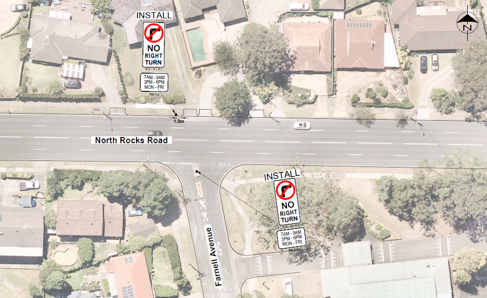 'No Right Turn' proposal between 7am to 9am and 3pm to 6pm Monday to Friday’ restriction in Farnell Avenue at North Rocks Road