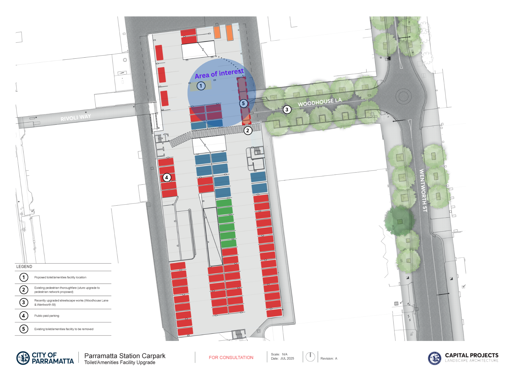The possible new toilets are proposed to replace existing facilities that would be removed as part of the southern precinct upgrades. This project would ensure the community continues to have access to safe, modern, and fully accessible public amenities, supporting Council’s plan to improve convenience and safety in Parramatta.