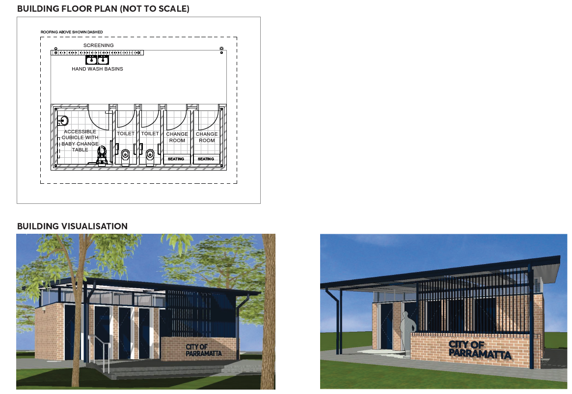 Council is finalising the detail design for a proposed public toilet and change- room facility at James Ruse Reserve. The proposed toilet and change-room facility includes: