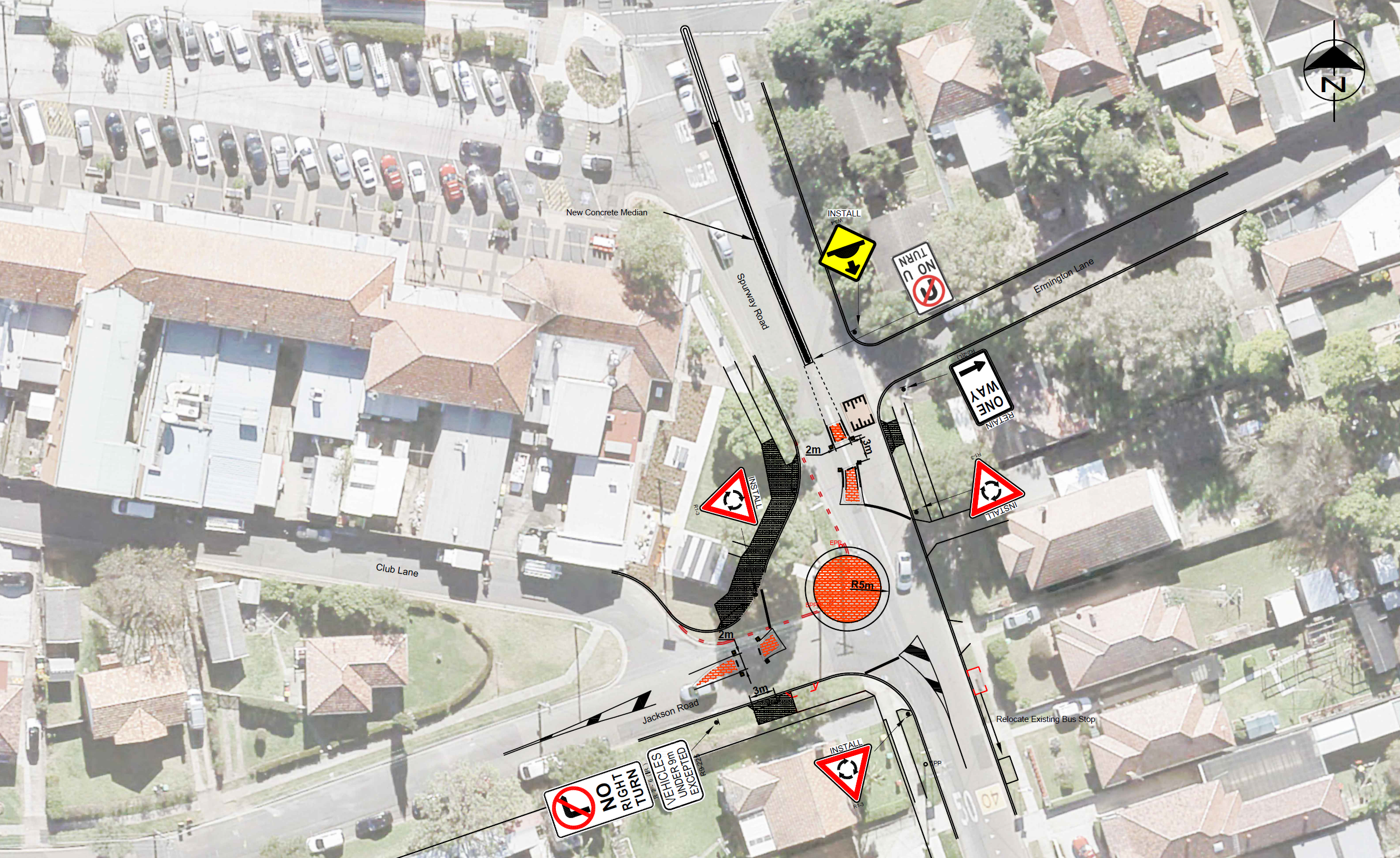 There are two main adjustments to the current traffic flow. Motorists entering Ermington town centre from Victoria Road will no longer be able to turn into the shopping strip while traveling southbound; instead, they must use the roundabout and enter via Spurway Street in the northbound direction. Additionally, motorists exiting the shopping area via Spurway Street cannot proceed southbound and will need to exit using River Road to travel southbound in the direction of Parramatta River.